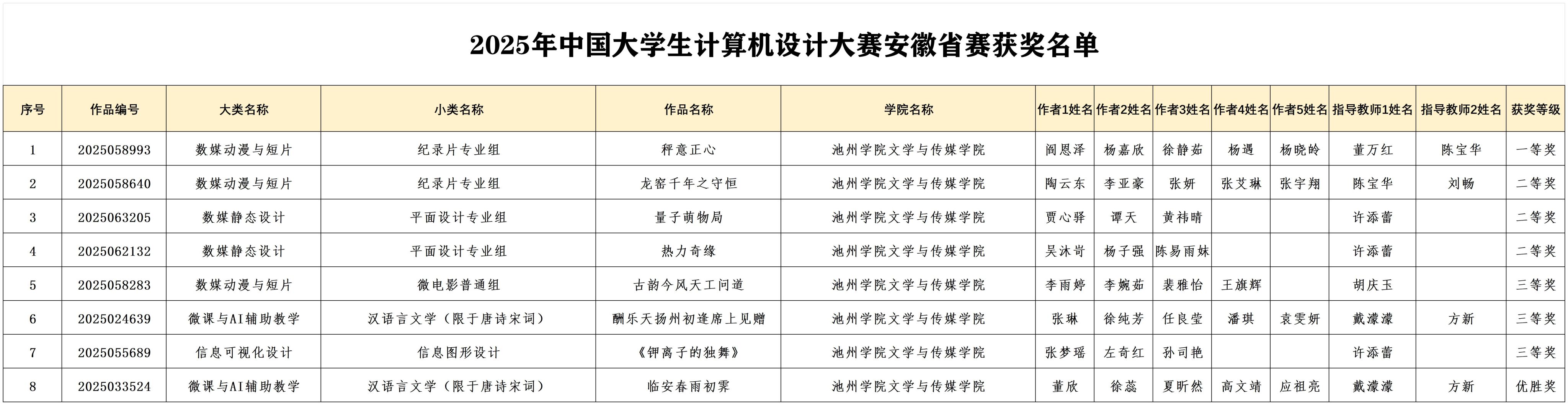 12月11日,2025年中国大学生计算机设计大赛安徽省级赛获奖名单正式公布。PP电子在本次比赛中表现优异,共荣获8项奖项,其中一等奖1项、二等奖3项、三等奖3项,优秀奖1项。