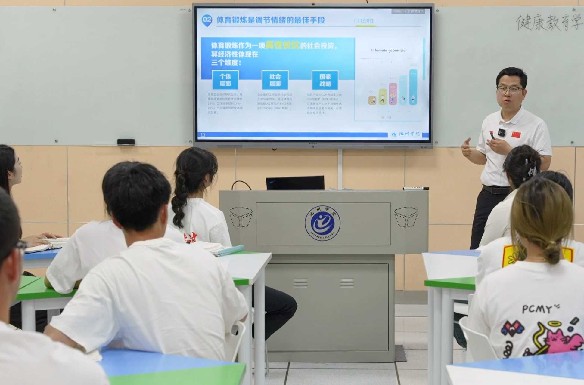 在理论课堂上,他将前沿科研成果转化为教学内容,专门开设“运动与情绪调控”单元,从诱发胺类物质释放、降低应激激素水平、提升自我效能感等方面,为学生详细讲解运动的生理和心理机制。他还会引入正念运动、舞蹈疗法等新兴交叉领域案例,拓宽学生视野。每当在课堂上引入这些内容时,他都能从学生眼中看到求知的光芒,而学生关于“如何为不同人群制定情绪改善运动方案”的提问,也常常激发他新的研究灵感。