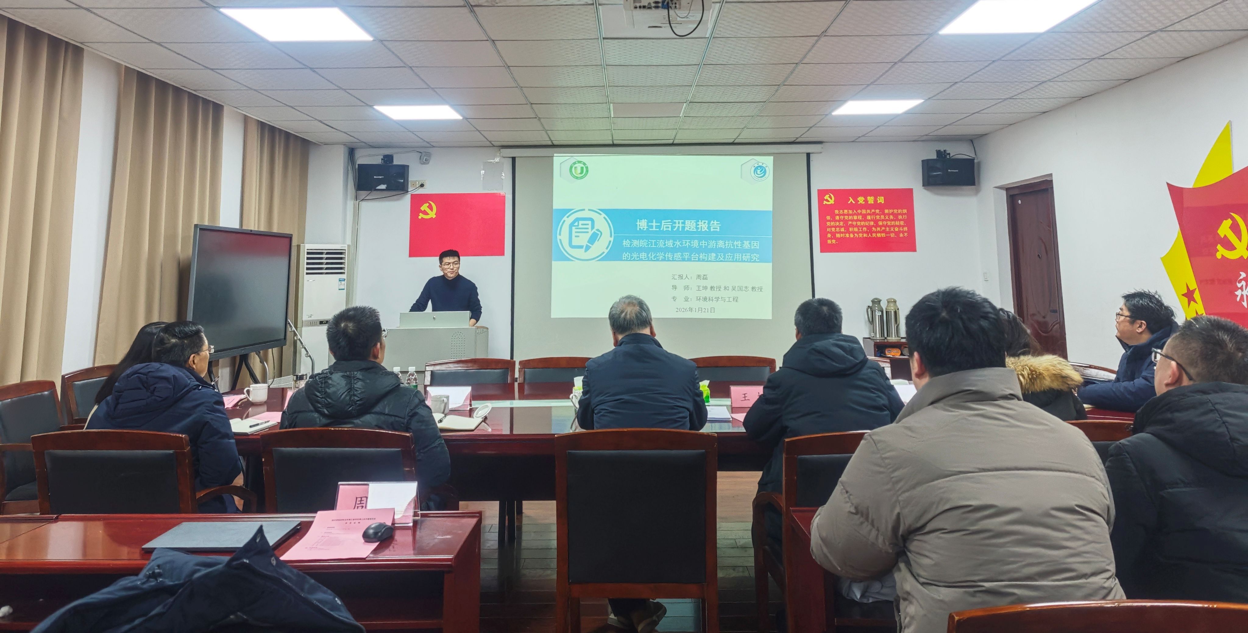 会上,周磊博士围绕“水环境中抗生素抗性基因传播的生态风险及新型光电化学传感平台构建”课题,系统阐述了相关研究背景、技术原理与实施路径。该研究旨在开发一种快速、灵敏、特异性强的现场检测方法,实现对皖江流域水环境中游离态抗性基因的动态监测与风险评估,为区域水环境保护提供技术支撑。