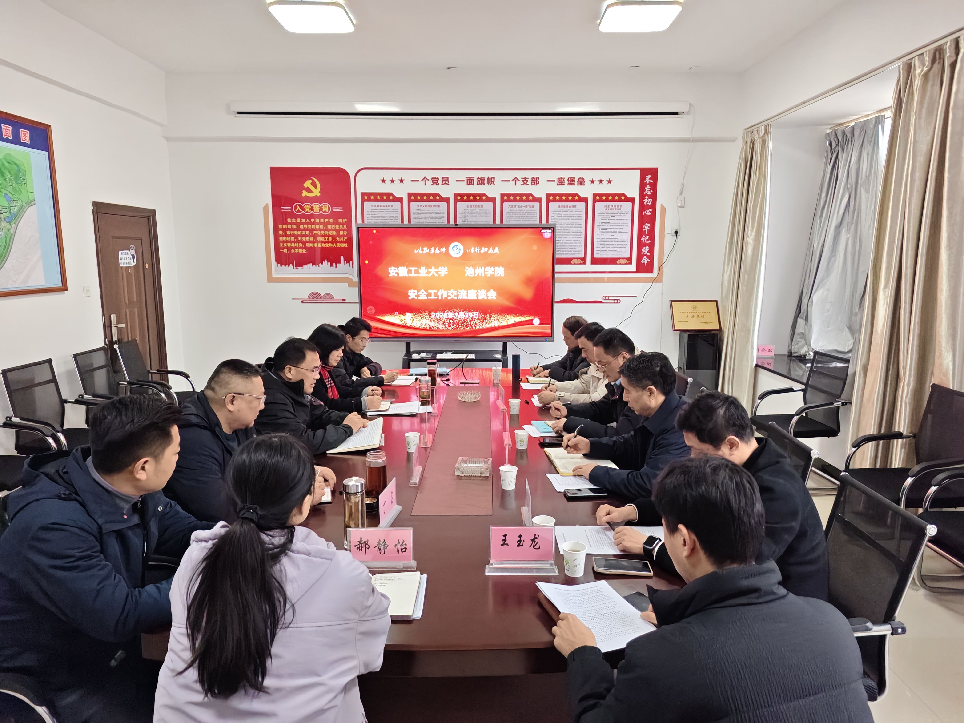 1月29日上午,安徽工业大学安全保卫部部长包恒庆一行来PP电子就校园安全管理与平安校园建设进行专题调研交流,校党委委员、副院长张赛接待来访并主持座谈。