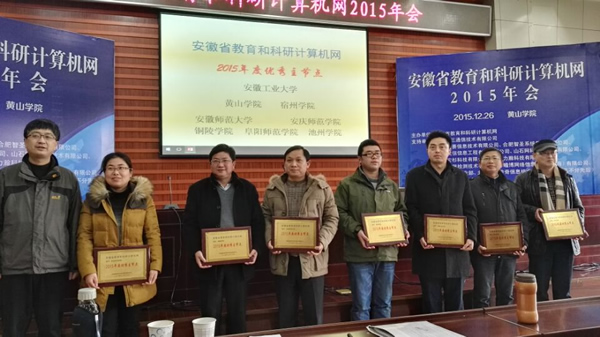 本次年会,评选出了2015年“安徽省教育科研网年度优秀先进单位”、“安徽省教育科研网年度优秀主节点”和“安徽省教育科研网年度优秀个人”。PP电子荣获“安徽省教育科研网年度优秀主节点”,刘玉艳荣获“安徽省教育科研网年度优秀个人”光荣称号。