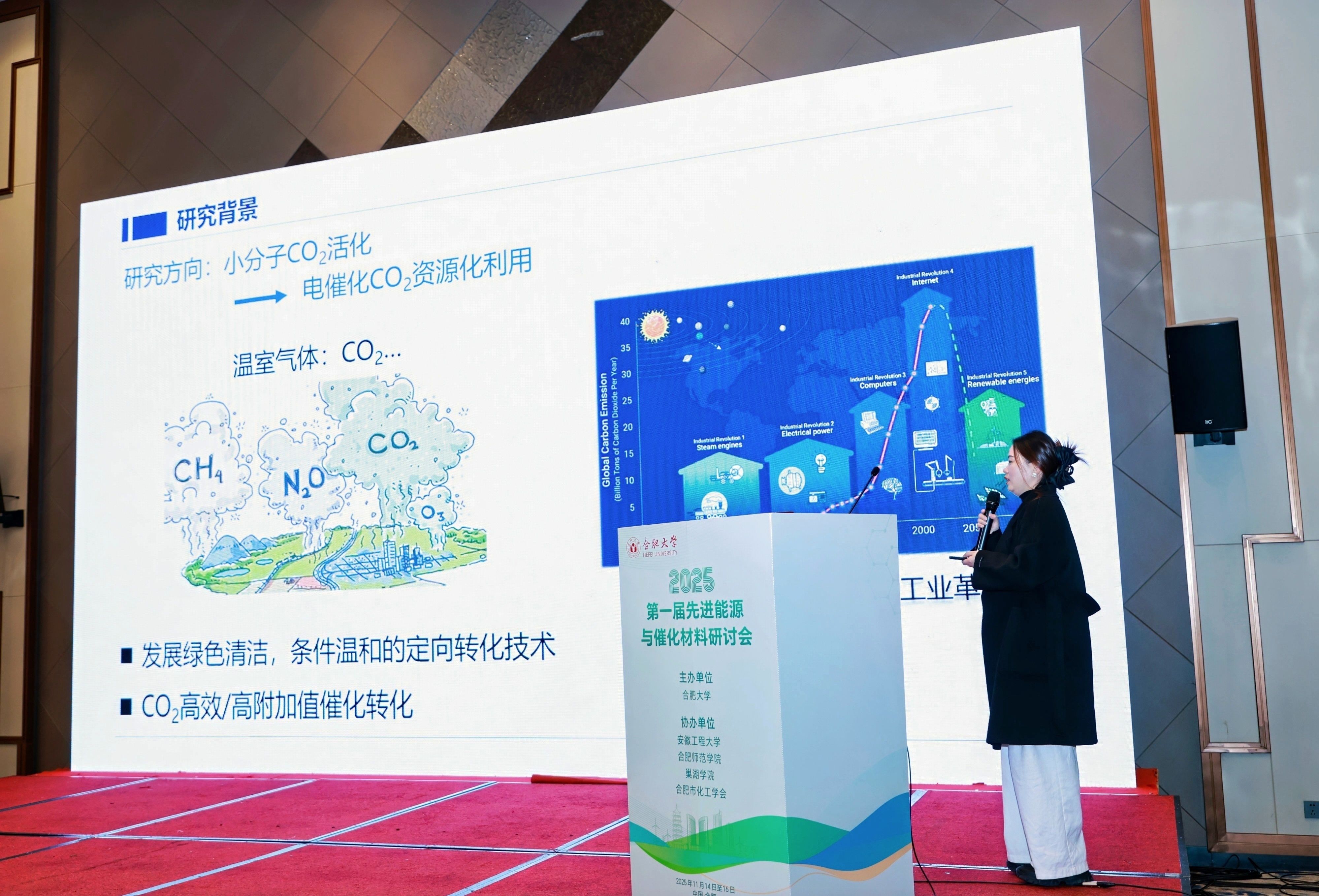 PP电子材料与环境工程学院王敏、王相宇教师在研讨会上分别作题为“银单原子合金上中间体内迁移增强CO2电还原为多碳产物”和“p区金属硒化物的构建及其CO2电还原性能研究”的口头报告,并与参会专家学者进行了深入学术交流和探讨。
