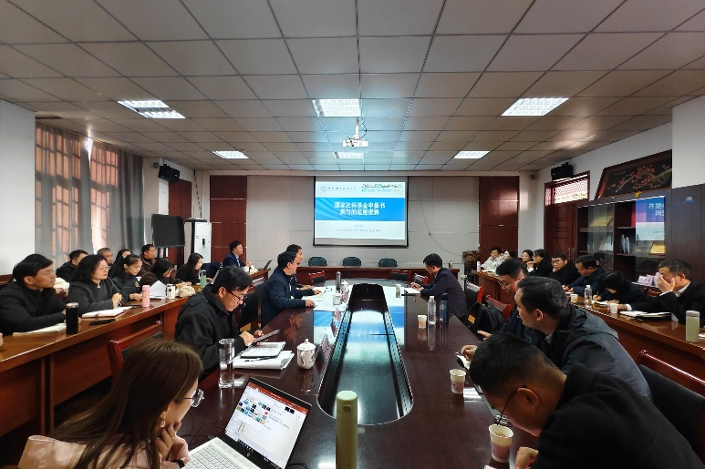 11月21日下午,2026年国家社科基金申报书撰写辅导讲座在博识南二楼学院会议室举行,中国科学技术大学管理学院二级教授、博士生导师刘志迎作为主讲嘉宾应邀出席,商学院(法学院)院长吴自爱教授主持讲座,安徽省发展战略研究会会员和商学院(法学院)教师参加学习。