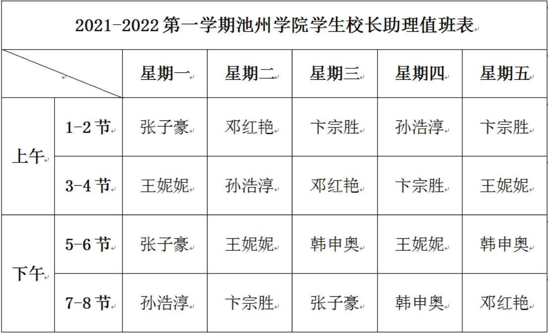 为便于广大同学熟悉学生校长助理工作时间,方便与学生校长助理联系,现将本学期学生校长助理值班表予以公布。