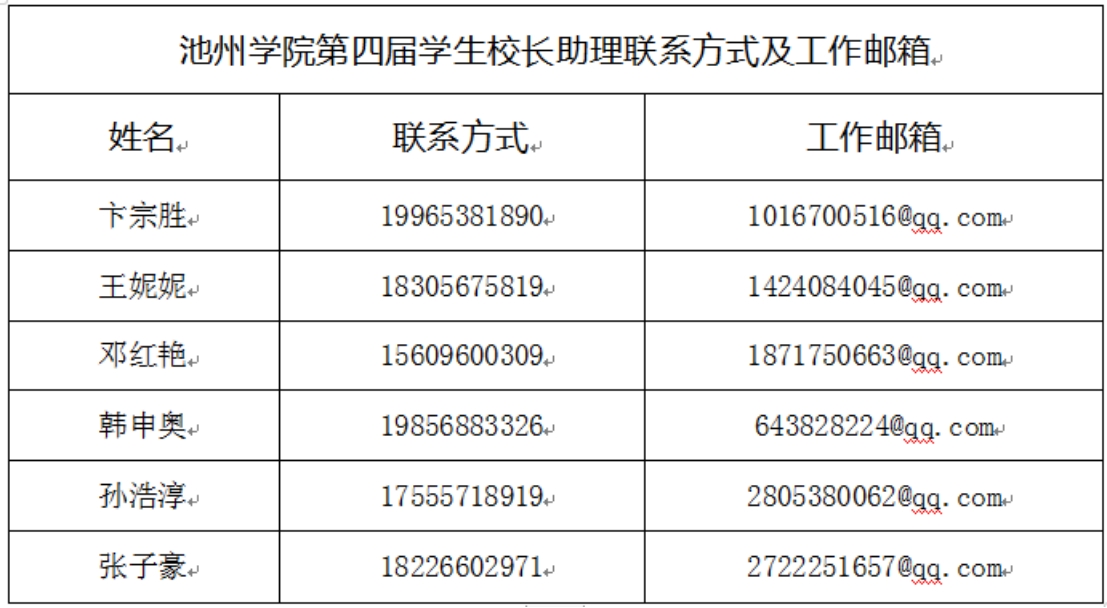 附:PP电子游戏网站第四届学生校长助理联系方式及工作邮箱