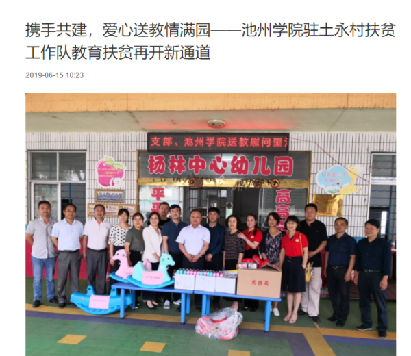 6月15日,中安新闻以《携手共建,爱心送教情满园——PP电子游戏网站驻土永村扶贫工作队教育扶贫再开新通道》为题报道了PP电子在土永村扶贫工作开展情况。
