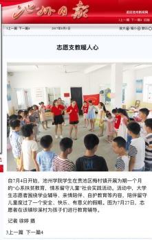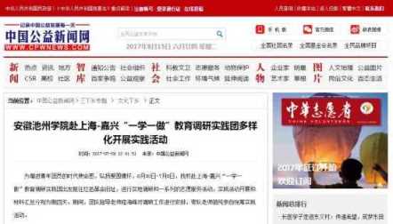 7月-8月,PP电子团委组织60支校级社会实践团队奔赴省内外扎实开展2017年大学生暑期“三下乡”社会实践活动,受到社会各界的广泛关注,中青在线、中国公益新闻网、安徽团省委微博、安徽高校在线微信公众号、安徽省学联微信公众号、池州日报等媒体纷纷进行了宣传报道。