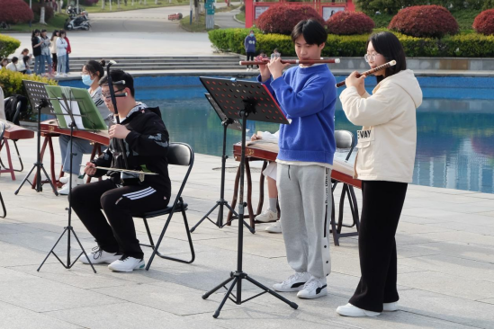 本次活动中,表演者用古筝的高山流水、二胡的悠扬婉转、笛子的清脆嘹亮展现着民乐风采,为同学们的在校生活带去更多的色彩以及继续昂扬向上的势头。