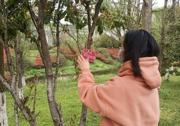 开展“聆树语,育苍荫”主题系列活动,培养新时代大学生绿色发展理念,将生态文明根植于每一位学生心中。通过组织线上答题的形式向同学们宣传环保理念,科普相关植物知识。通过PPT讲解活动,对校园内现有的植物资源知识进行普及。通过挂树牌活动提高了同学们爱护环境保护树木的意识和动手实践的能力,进一步营造了校园爱绿、护绿的良好文化氛围。