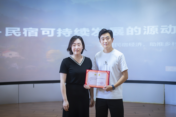 活动中,池州民宿产业发展研究中心主任余菲菲为陈然总经理颁发了研究员聘书。