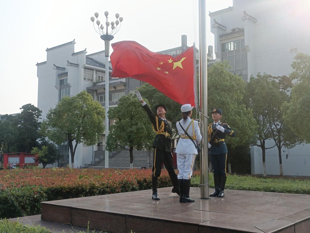 仪式第一项,升国旗,奏国歌,行注目礼。国旗护卫队在全体成员的注目礼下,护送鲜艳的五星红旗进场,庄严的《义勇军进行曲》响起,五星红旗伴着微风冉冉升起,全体成员的眼中包含着对祖国深深的敬意。