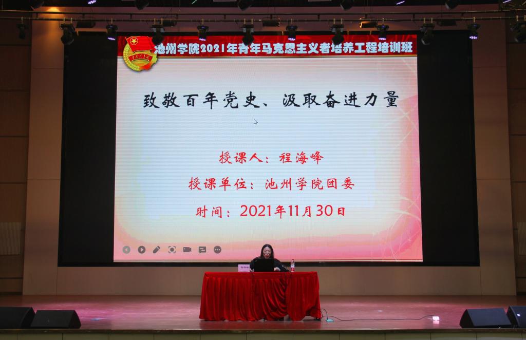 典礼结束后,程海峰为培训班进行了第一讲,PP电子专职团干部和本期青马班全体学员聆听了本次课程。程海峰以“致敬百年党史,汲取奋进力量”为主题,从学党史、强信念、跟党走,共青团组织建设和干部建设,学习贯彻党的十九届六中全会精神三个方面,结合百年党史,为学员们详细解读了党的十九届六中全会精神,号召学员们汲取党史养分、凝聚奋进力量。她强调,习近平新时代中国特色社会主义思想是指引我们奋进新征程的伟大思想旗帜,要扎实推进全面从严治团,结合专业特点开展团学活动。