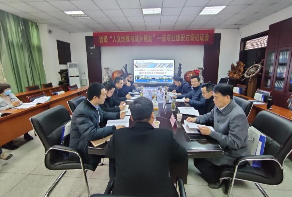 为强化省级一流专业内涵建设,明晰专业建设目标,厘清建设思路深化,明确重点建设任务,2021年12月11日,地理与规划学院召开了省级“人文地理与城乡规划”一流专业建设方案论证会。会议邀请了池州职业技术学院院长许信旺、教务处副处长戴启培,池州市规划勘测设计总院规划分院院长何源、总工程师钱伟,池州市林业局副局长胡敏、综合科科长江飞,池州华城都市规划设计有限公司总经理徐康等地方单位的领导及技术骨干参加。地理与规划学院院长张乐勤、党委副书记许卫兵、副院长胡和兵、教务处李应华科长及城乡规划教研室全体教师参加了论证会,会议由胡和兵主持。