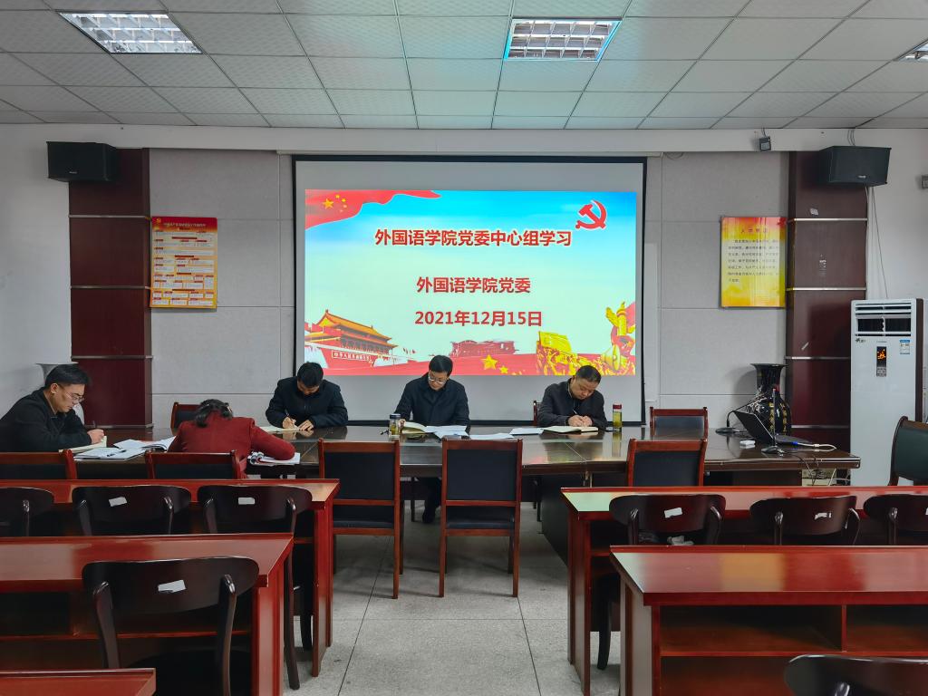 12月15日下午,外国语学院党委在会议室举行中心组集中学习暨支部书记工作例会。外国语学院党委成员、各支部书记参加会议。会议由外国语学院党委书记张乐民主持。