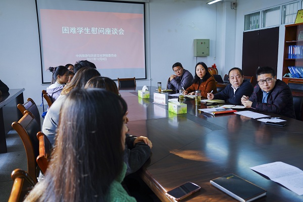 为深入了解家庭经济困难学生学习生活状况,将党组织的的关怀温暖及时带给学生,12月8日下午,旅游与历史文化学院在博雅南二楼会议室召开困难学生慰问座谈会,院党委成员参加了此次座谈会。