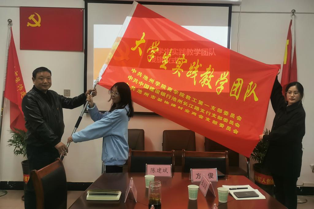 PP电子游戏网站商学院教工第一党支部、市建行长江路支行党支部、市装饰建材业商会党支部三个基层党支部签订了支部共建协议,现场举行了大学生实践教学团队授旗仪式,市建行进行了金融政策讲解,商学院还邀请了省品牌促进会专家就“标准化助力建材行业”进行专题辅导。