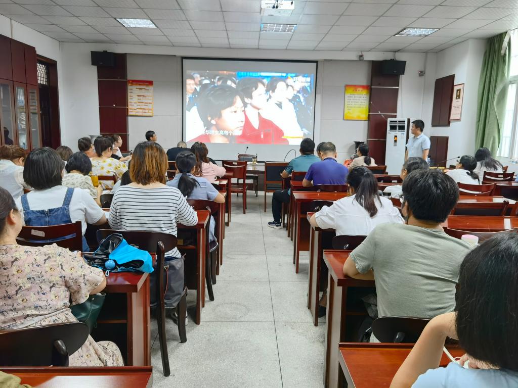 大家共同观看了全国优秀教师张桂梅先进事迹、听取了校最美教师徐津津老师和省级线上教学新秀唐玫老师的成长经历交流发言。