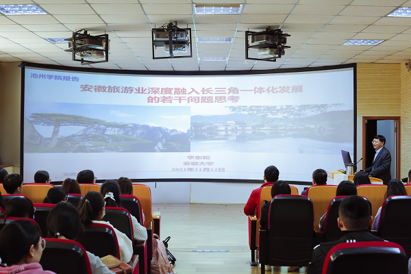 为提升全院教师学术研究能力,培养学生专业素养,旅游与历史文化学院于11月10日和11月12日,分别邀请黄山学院副校长胡善风教授、安徽大学商学院副院长李东和教授作题为《新时代新征程——世界遗产地(黄山)可持续旅游发展实践》《安徽旅游业深度融入长三角一体化发展的若干问题思考》的学术讲座。旅游与历史文化学院教师和学生代表聆听了学术讲座,讲座由院长胡文海主持。