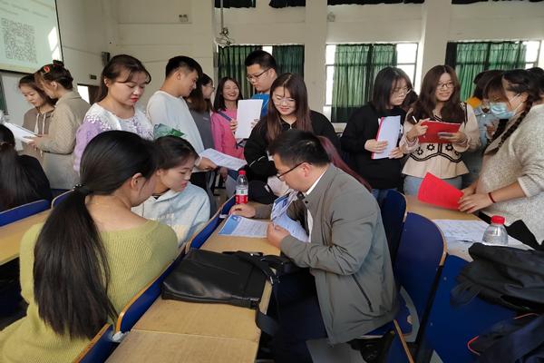 学院2022届四个专业共有394名毕业生,毕业生穿梭在各个招聘展位前,咨询单位情况、岗位信息等,为自己的职业发展精选目标并积极投寄简历。