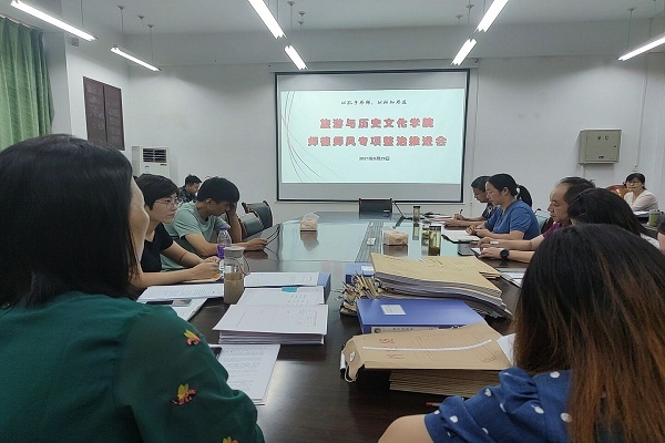9月29日下午,旅游与历史文化学院在博雅楼会议室召开师德师风专项整治推进会,全体教职工参会,会议由院党委书记程晓丽主持。