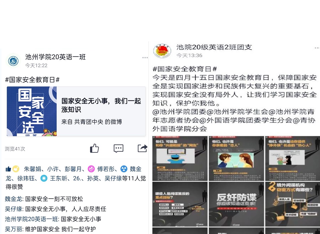外国语学院师生们纷纷表示,通过收看公开课、参与知识竞答等活动,对总体国家安全观有了进一步了解,对国家面临的安全形势有了进一步认识,增强了在日常工作、学习和生活中自觉防范国家安全风险的意识。学院将继续深入推进安全教育宣传活动,依托学院网站、微信公众平台等渠道,引导师生加强学习并积极树立总体国家安全观,增强国家安全法治意识,营造维护国家安全的浓厚法治氛围。