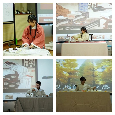 冬日茶会中18组团队茶艺作品主题包括“母爱如茶”“雪日见客”“将军与茶娘”“东方女孩”“水墨烟云”等,茶席设计创意无限,泡茶技艺娴熟,还融合了书法、绘画、焚香、插花、舞蹈、戏剧等艺术形式,一盏盏茶汤是对建党一百周年的深情献礼,也蕴含着亲情、友情和爱情,充分表达了新时代大学生对中国传统文化的热爱与自信。