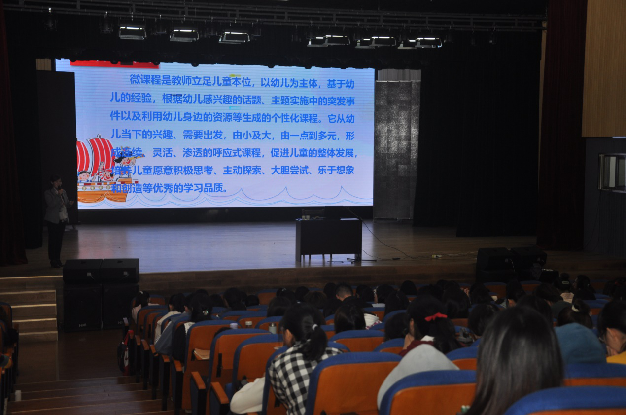 实验幼儿园王雪梅园长在以《立足儿童本位的幼儿园微课程》为题的讲座中,深入浅出地分析了何谓儿童本位,强调了幼儿教师要以更加辩证的视角理解“儿童本位”,理解“尊重儿童”,防止跌入把完全顺从幼儿所有的需求当作儿童本位的陷阱。并以“魅•主播”和“探究牙齿的奥秘”两个微课程为例,向同学们详细的说明微课程的实践探究该如何创设丰富的教育环境,最大限度地支持和满足幼儿通过直接感知、实际操作和亲身体验获取经验的需要。
