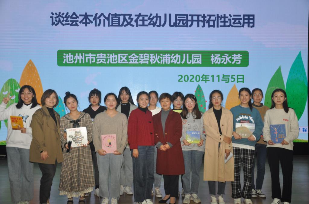 贵池区汇景幼儿园方敬云园长在以题为《幼儿教育教学中的师幼互动》的讲座中,向同学们介绍了师幼活动的具体形式,并分享了汇景幼儿园在小班《甜津津的河水》、中班《大风》以及大班《九色鹿》的教育实例帮助同学们更好地理解师幼互动。