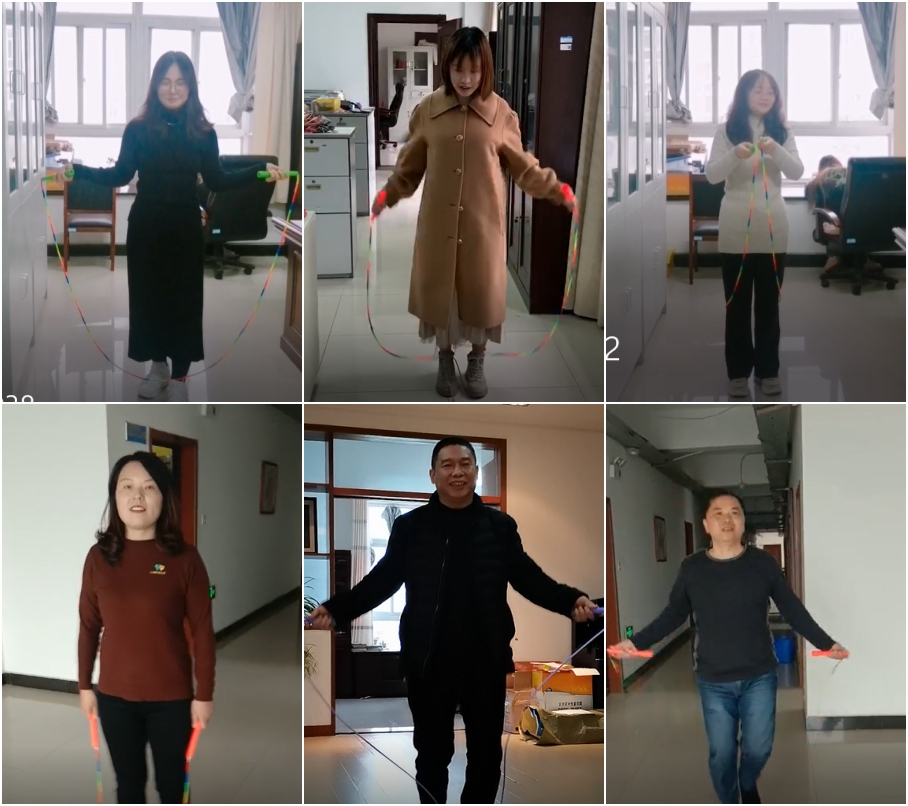 在特殊的疫情防控期间,为避免人群聚集的风险,机关二分工会采用线上比赛的形式,通过一分钟的单摇,交叉跳以及一带一单摇跳三个项目,47名分工会会员积极参与,结合自身现有场地,利用工间休息时间进行视频录制,共提交了96份参赛视频。