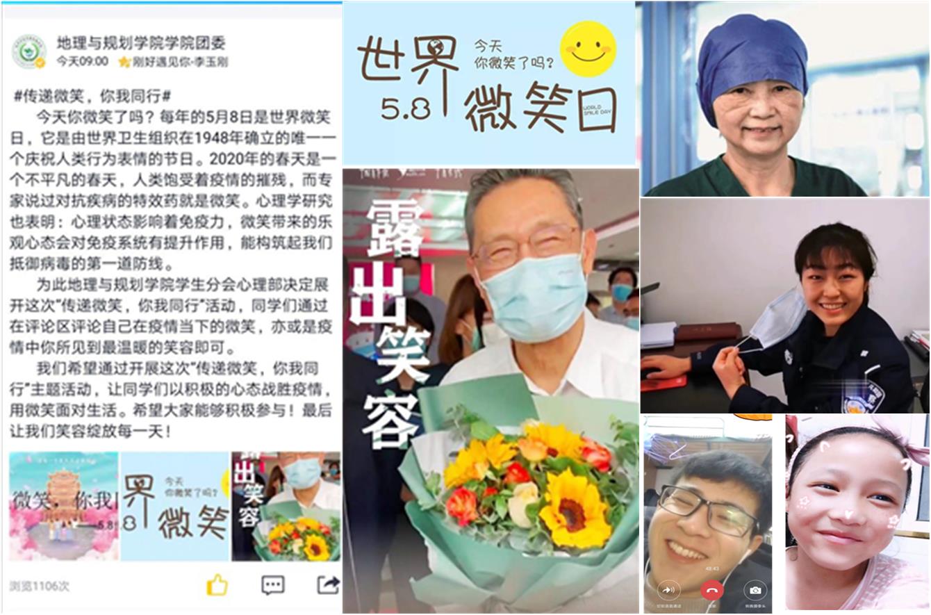 每年的5月8日是世界微笑日,是由世界卫生组织在1948年确立的唯一一个庆祝人类行为表情的节日,希望通过微笑促进人类身心健康,同时在人与人之间传递愉悦与友善,增进社会和谐。2020年5月8日,是第72个世界微笑日。PP电子游戏网站地理与规划学院举办了“世界微笑日——传递微笑,你我同行”主题活动,此次活动由地理与规划学院学生分会心理部承办。