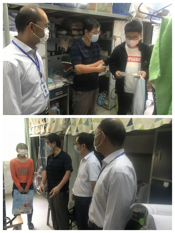 认真落实学生返校方案,提供人性化服务。毕业班辅导员认真摸排信息,掌握学生返校目的,对部分非必须返校的同学提供所需要的帮助,减少路途奔波。学院党政领导班子带领全体行政人员和辅导员,对全院返校学生近30间学生寝室进行消毒消杀、开窗通风、晾晒被褥,同时仔细检查登记寝室是否存在安全隐患,守护学生返校。在得知有五位返校学生将在5月12日凌晨3点半到达,陆克中院长亲自开车前往火车站,将返校学生接送至学校寝室。12日下午,学院领导班子前往学生寝室,看望返校学生,送上学院准备的包括口罩、温度计、洗手液在内的返校大礼包,叮嘱他们注意防疫安全,适应学习生活方式的改变,让学生切实感受到学院对于返校学生的关心。