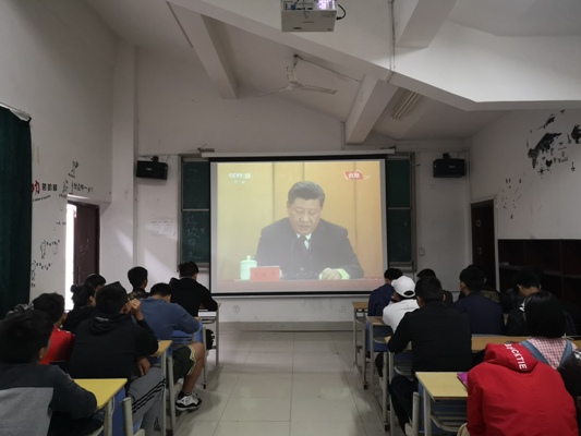 4月30日上午10点30分,体育学院在多媒体教室组织2019年发展对象、积极分子培训班学员、优秀团学干部100余人集中观看了纪念五四运动100周年大会直播。