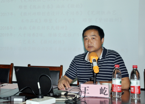 池州市文旅局副局长施春凤、艺术科科长江屏,池州市辖各县区文化旅游系统领导,池州市各艺术协会、团体领导,美术与设计学院全体教师等近60人出席了此次会议。