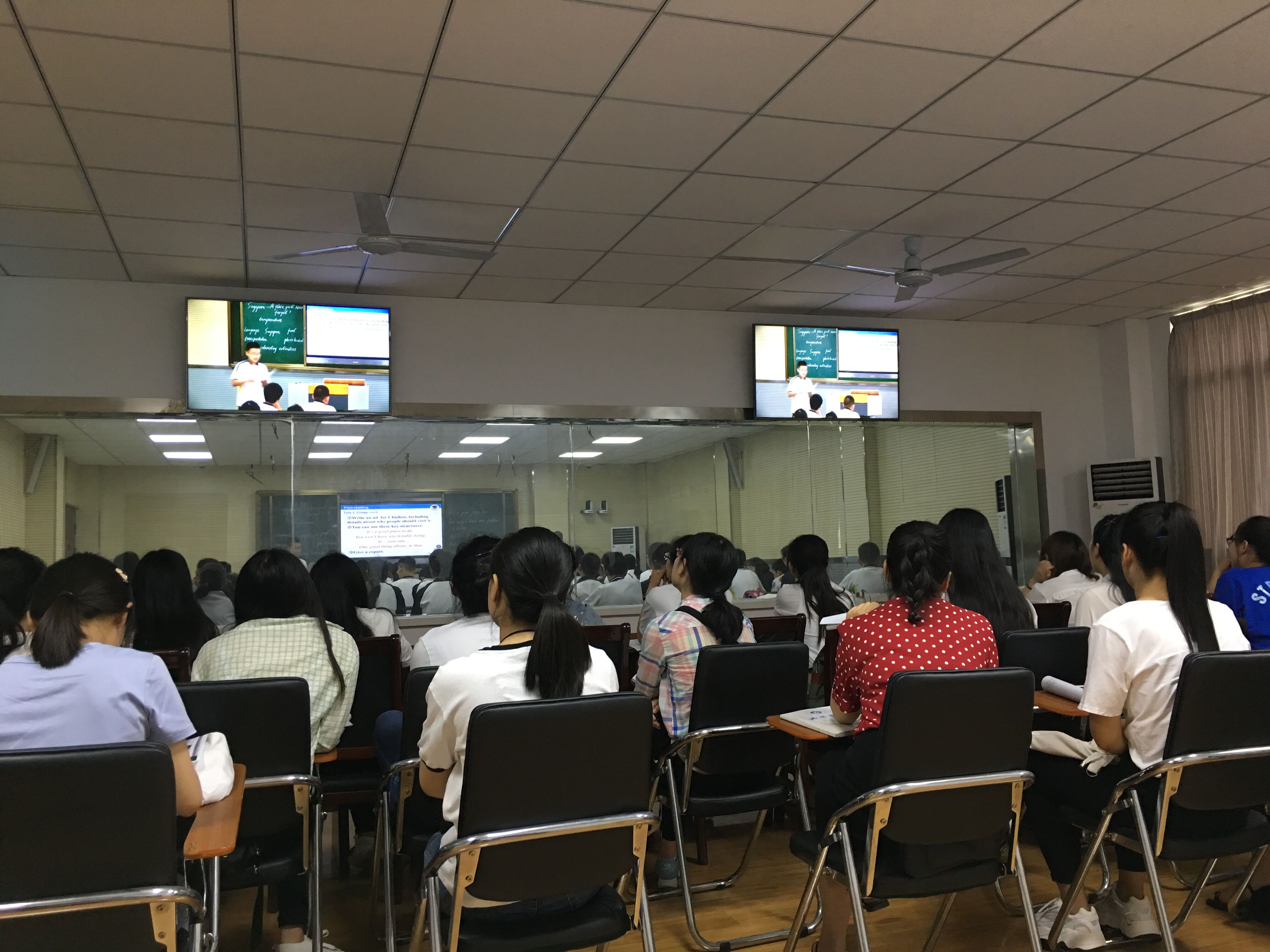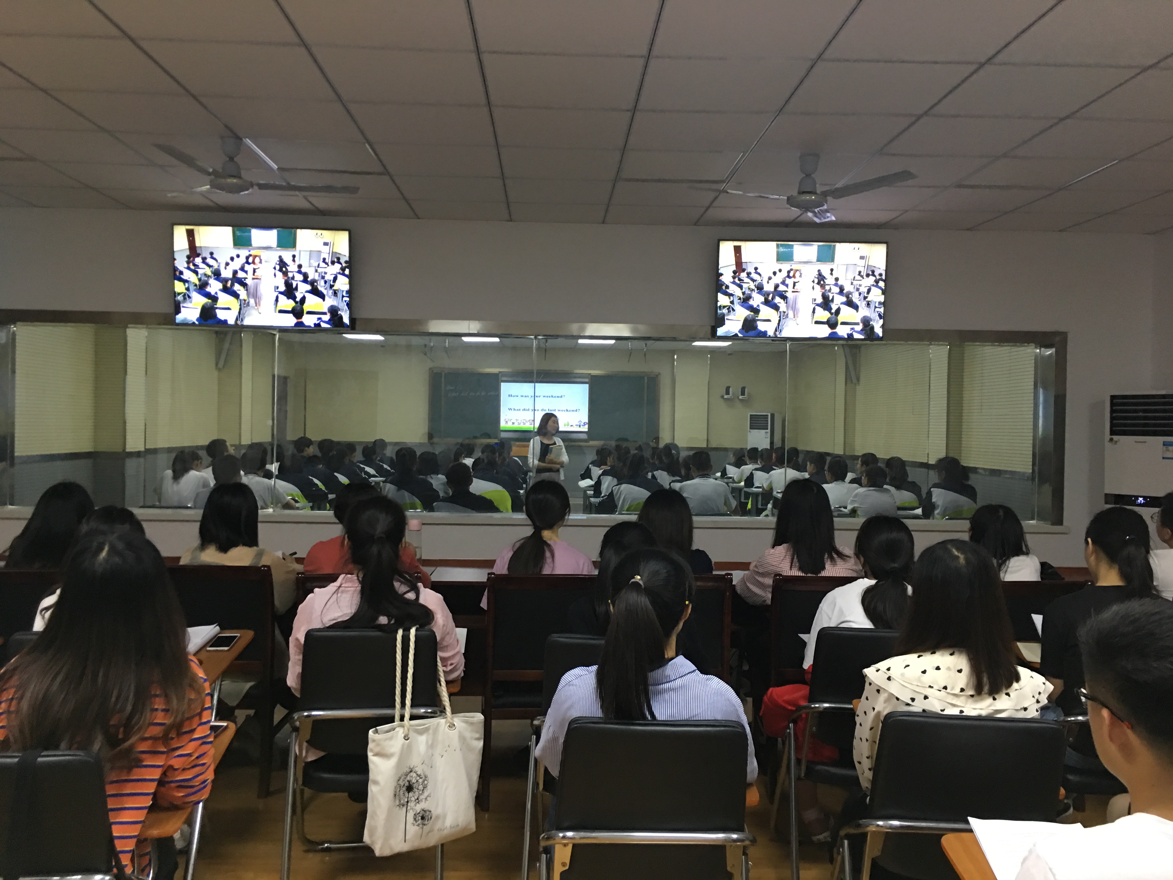 为组织好本次见习活动,外国语学院事先多次和实习基地池州十一中教务处和英语教研组进行了沟通,确定了实习内容和具体安排,以确保让学生能够有最大的收获。池州十一中对本次见习也高度重视,安排了初一、初二四位教学经验丰富的优秀教师在录播室开展四节公开课教学。四位老师从教案撰写、多媒体课件制作和利用、课堂导入、课堂互动、课堂组织、教育育人等各方面为PP电子英语专业师范生进行了展示。