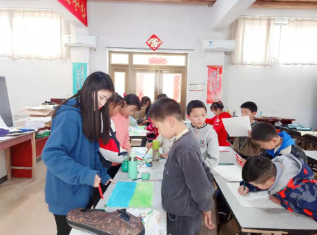 美术与设计学院学生第一党支部每月选派预备党员或入党积极分子到白洋基地开展结对帮扶活动,主要内容是为基地内的留守儿童和孤儿进行美术教育培训。