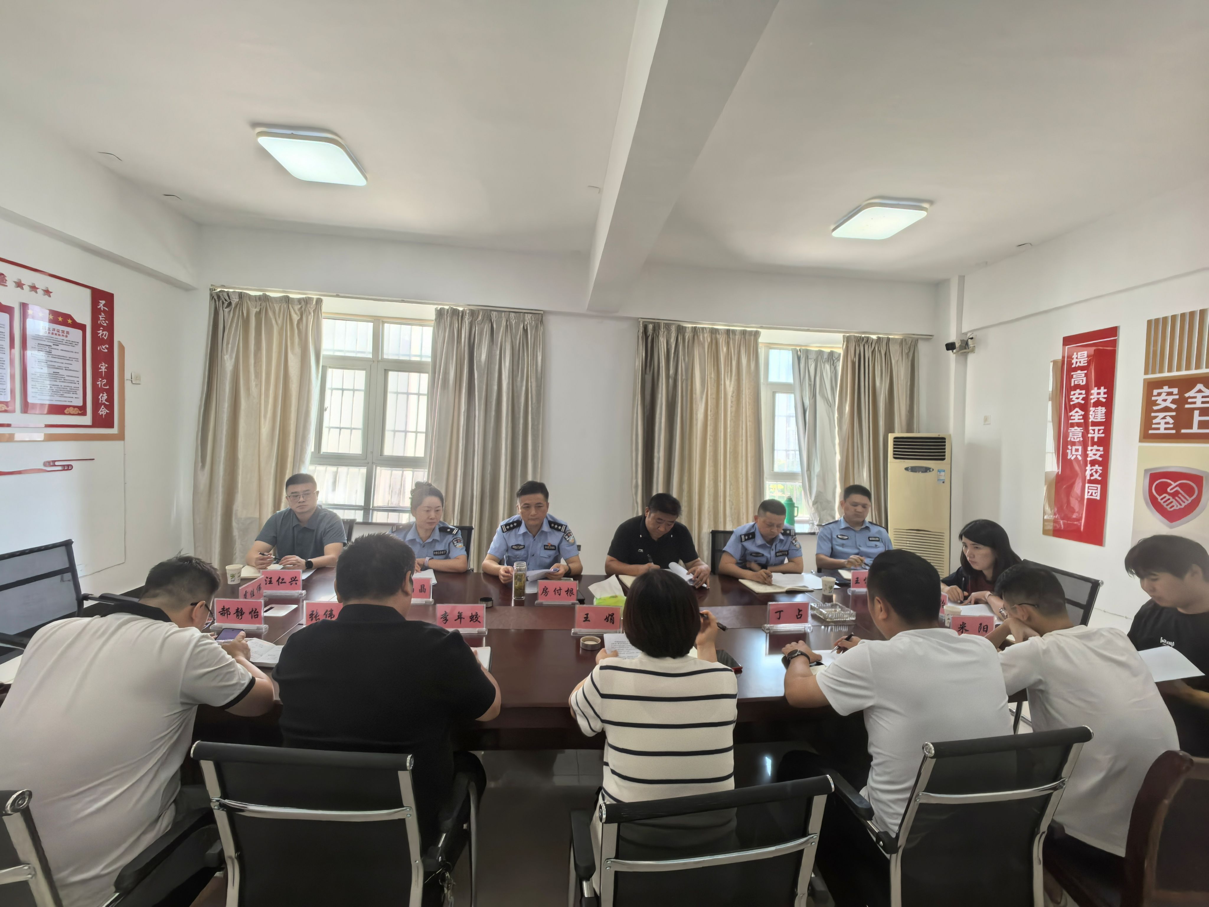 为进一步筑牢校园反诈防线,提升师生防骗识骗能力。9月5日,池州市公安局刑警支队支队长房付根率队,会同池州职业技术学院、安徽卫生健康职业学院保卫处负责人一行来校,开展新学期开学季反诈工作专项调研。安全管理处全体人员参与调研座谈。