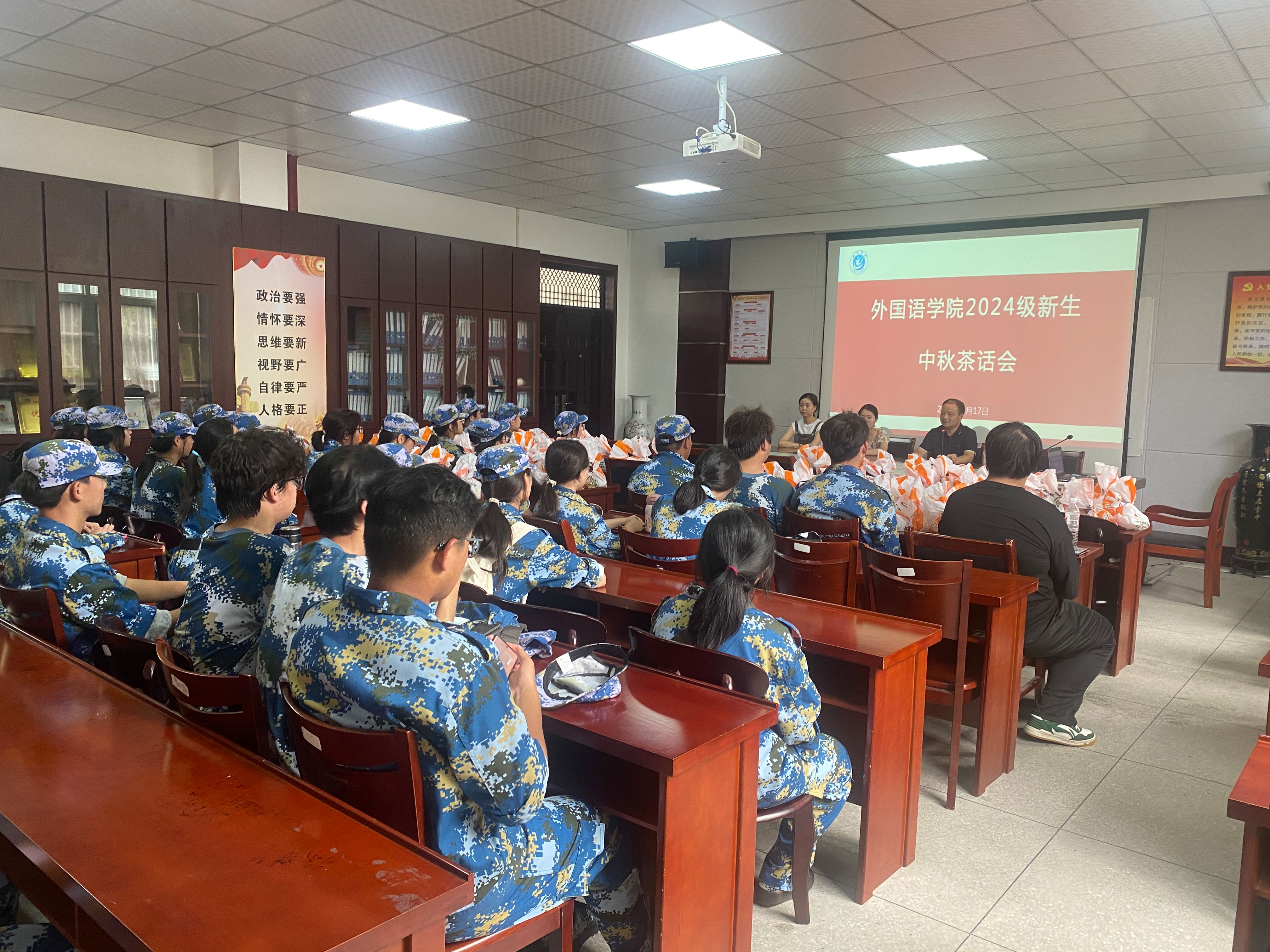 9月17日,外国语学院举行2024级新生中秋茶话会,外国语学院院长余义兵主持会议。师生欢聚一堂,共同庆祝这个充满团圆和温馨的节日。