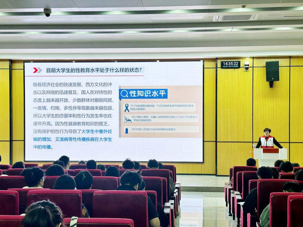 廖文蕾结合实际案例,围绕性生理、性发育、性卫生保健以及人类性心理发展的相关知识,深入浅出地讲解了青少年青春期可能出现的性需求和想法,引导同学们以科学的态度看待性问题,并树立正确的性观念。她着重强调了预防艾滋病的重要性,并详细普及了呵护生殖健康及预防艾滋的知识,呼吁大家通过养成良好生活习惯来有效预防艾滋病。
