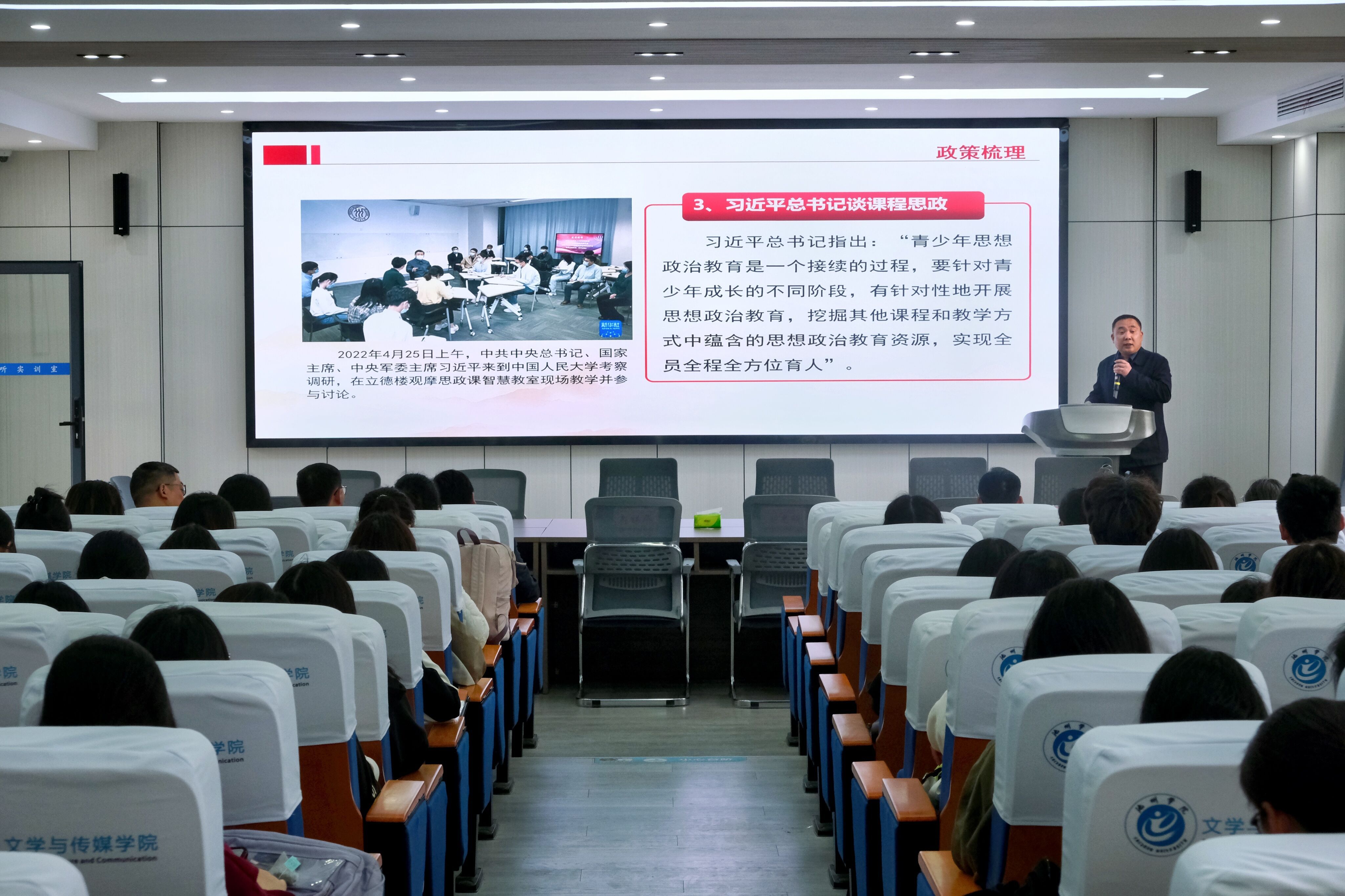 徐礼义作“坚持立德树人 推进思政课程”主题讲座。他从政策梳理、理论研读、教育实操三个方面对课程思政的指导思想、内涵外延、教学目标等进行了深入解读,并用丰富的教学案例对课程思政的具体教学方法做了探究。