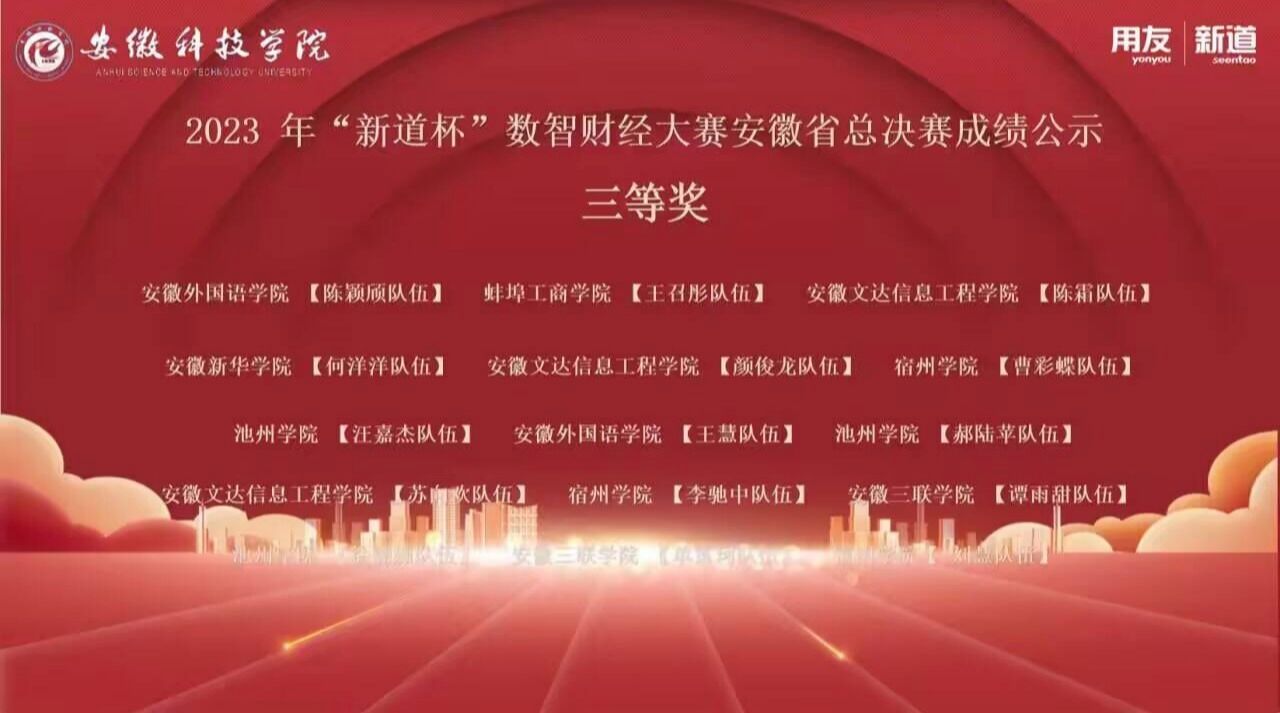 11月19日,“新道杯”数智财经大赛安徽省总决赛圆满落幕。此次大赛由中国商业会计学会和新道科技股份有限公司主办,安徽科技学院承办。