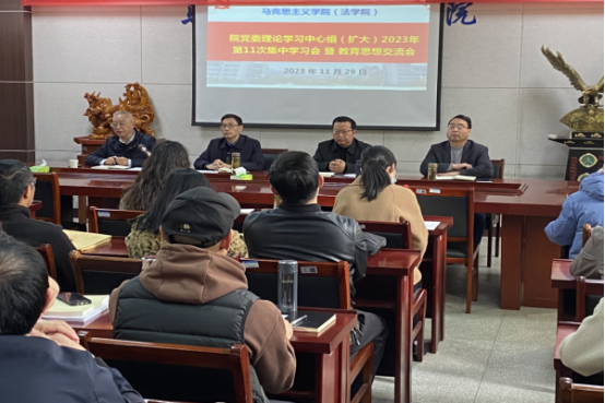 11月29日下午,马克思主义学院在博爱南二楼会议室举行教育思想大讨论。学院全体教职工参加会议。学院党委书记刘为国主持会议。