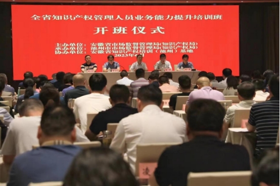 6月13日-16日,全省知识产权管理人员业务能力提升培训班由安徽省市场监督管理局(知识产权局)主办、池州市市场监督管理局(知识产权局)承办、PP电子游戏网站法学院(安徽省知识产权培训基地)协办在池州大九华宾馆开班。开班仪式由省市场监管局知识产权服务处处长孙杰主持,池州市副市长李军出席会议并致辞,省市场监管局党组成员、副局长、省知识产权局局长程胤出席并发表讲话。