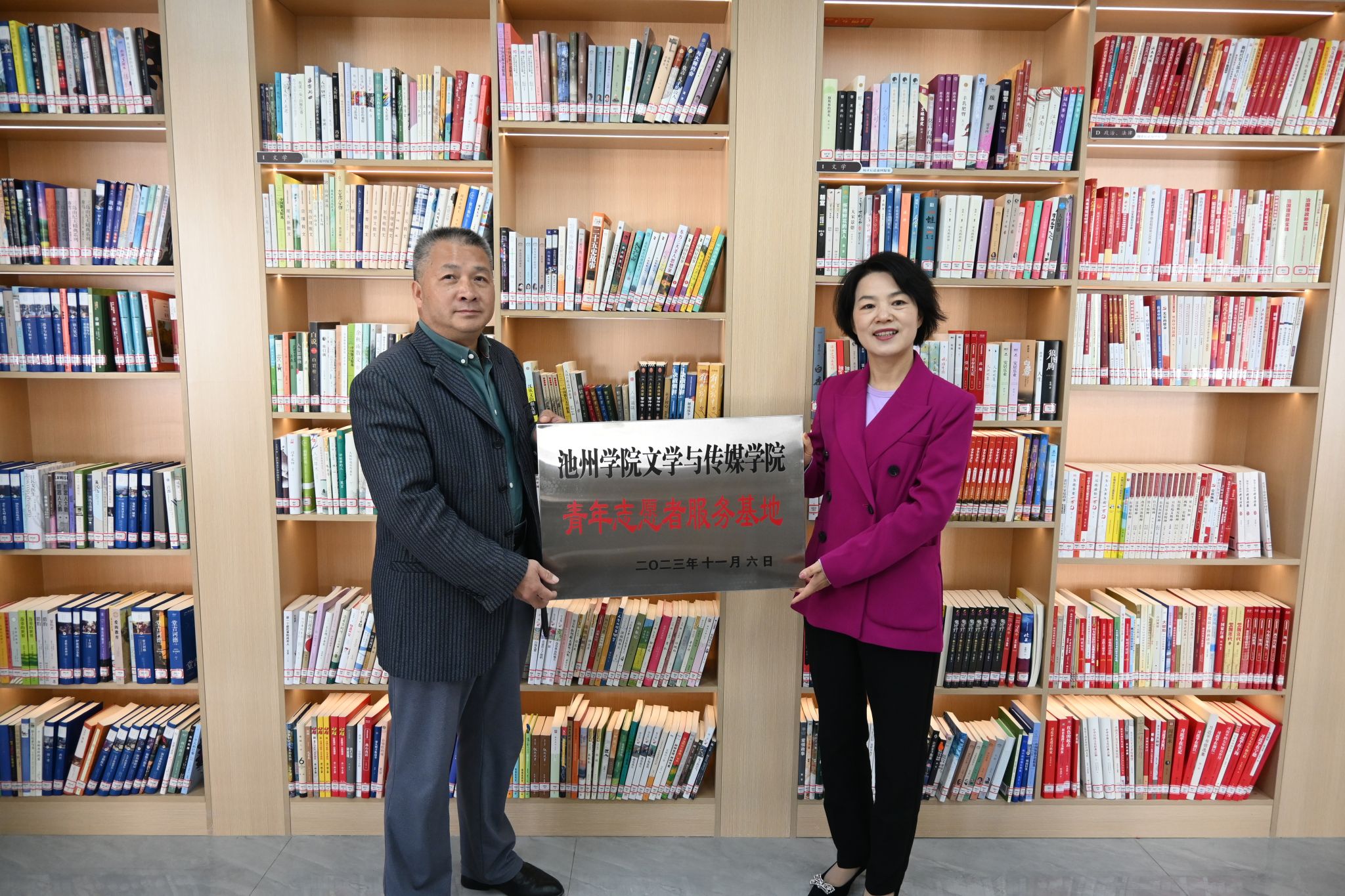 11月6日上午,文学与传媒学院党委书记许思友、党委副书记刘德群、团委副书记戴濛濛、组织员董万红及学生代表赴锦绣苑社区党群服务中心,与贵池区江口街道锦绣苑社区举行青年志愿者服务基地签约挂牌仪式。锦绣苑社区党总支书记吴小莉,居委会主任李萍等出席仪式。