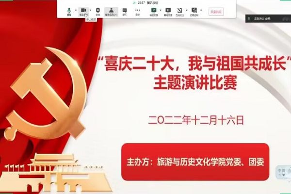 喜庆二十大、我与祖国共成长:12月16日,学院团委、各党支部联合举办线上“喜庆二十大,我与祖国共成长”主题演讲比赛,参赛选手们紧紧围绕主题,用生动的语言、鲜活的事例,饱含激情地讲述,充分展示了学院师生主动担当作为、积极奋发进取的昂扬精神风貌,在筑梦新时代中展现新担当、新风貌、新作为。