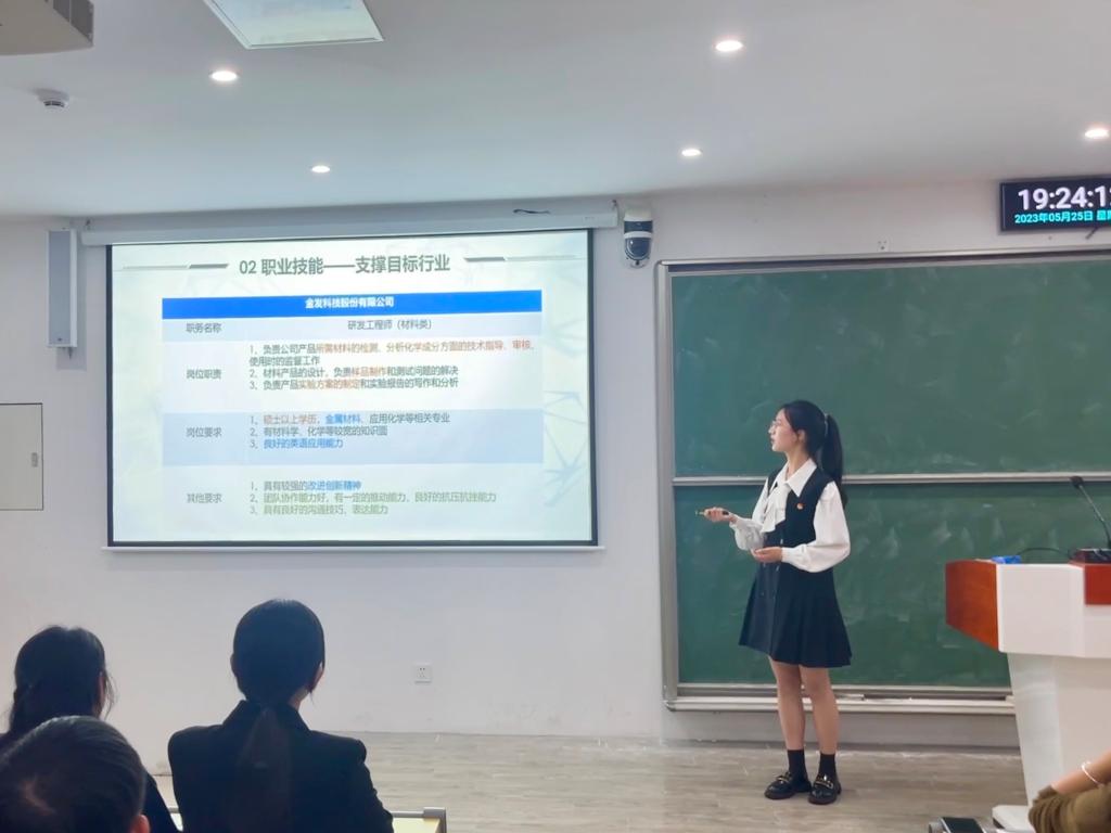 选手们结合PPT,通过现场演讲的形式,以精炼的的语言对自我认知、职业认知、自身优势和劣势、未来展望等方面进行全面分析,生动地展示了自己的职业理想和规划,表达自己对职业生涯的规划和对未来的无限憧憬与展望,演讲过程极富感染力,赢得了评委和现场观众的阵阵掌声。经过评选,21材化1班王宇嘉获得一等奖;21环工陆金新,21环工潘佳盼,22应化2班方凌旭获得二等奖;21材化1班姚杨,21应化1班许明志,21材化张振方,22材化2班丁楠楠获得三等奖。