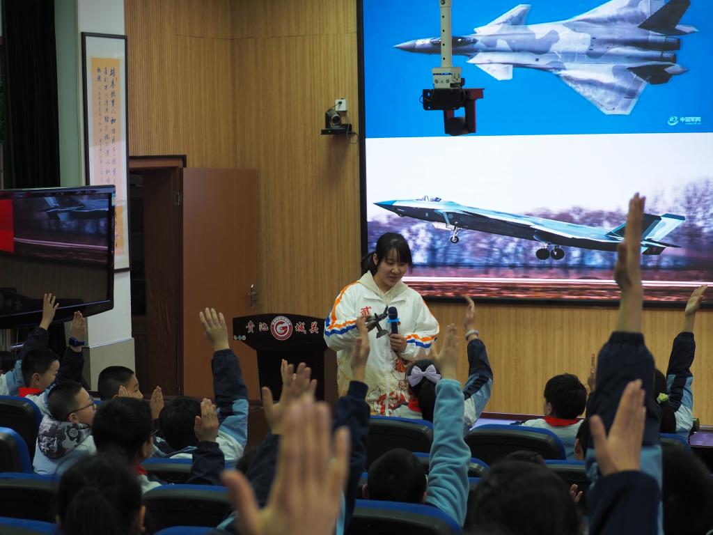 本次宣讲通过讲述全面建成社会主义现代化强国两步走战略,展示中国式现代化的光明前景,帮助少先队员加强对2035年基本实现社会主义现代化的远景目标的理解,教育引导少先队员听党话、跟党走。宣讲团对东风41洲际导弹、歼-20、C919飞机、复兴号列车、港珠澳大桥、嫦娥五号等大国重器进行精彩纷呈的讲解介绍,让小朋友们了解这些国之重器的建造过程、组成结构、诞生意义等。介绍过程中通过实体模型、视频展示、互动提问,让小朋友们沉浸式学习,以寓教于乐的形式,给小朋友们一个触手可及的“大国重器之旅”。