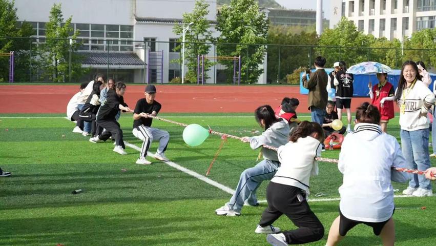 热身活动后,参与者们组成若干团队,各队自主设计本队队旗、口号,小组成员积极参与、集思广益、热情洋溢,设计成果富有易班特色和青春活力。随后各团队依次开展素质拓展活动,五毛和一块、战胜病毒、气球爆破、拍7令、快乐传真、拔河……各类游戏精彩纷呈,让人眼花缭乱,现场气氛热烈。