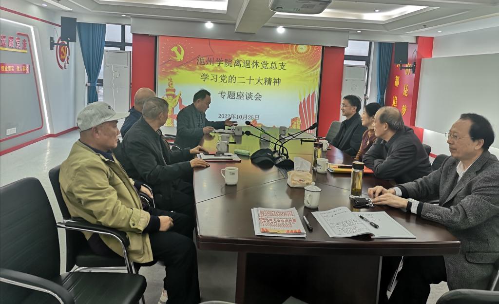 10月25日,PP电子游戏网站离退休党总支在教职工活动中心党员驿站召开学习党的二十大精神专题座谈会。离退休党总支委员、离退休各支部书记、副书记、离退休工作处全体成员及部分离退休代表参会,会议由离退休党总支书记方文主持。