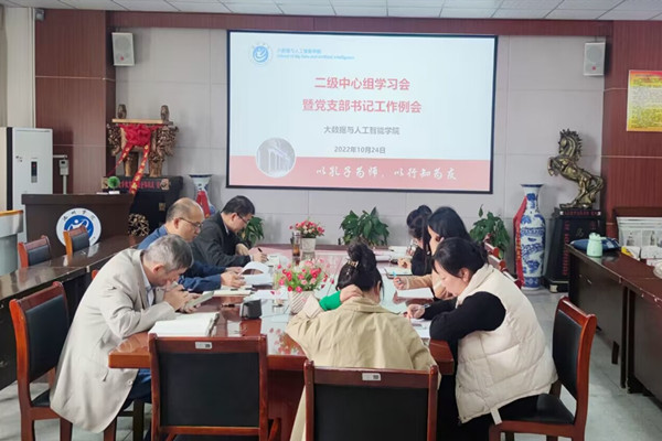 10月24日,大数据与人工智能学院召开二级中心组学习会暨党支部书记工作例会,专题学习党的二十大精神。学院二级中心组全体成员、各党支部书记参加会议,学院党委书记宛明高主持学习会。
