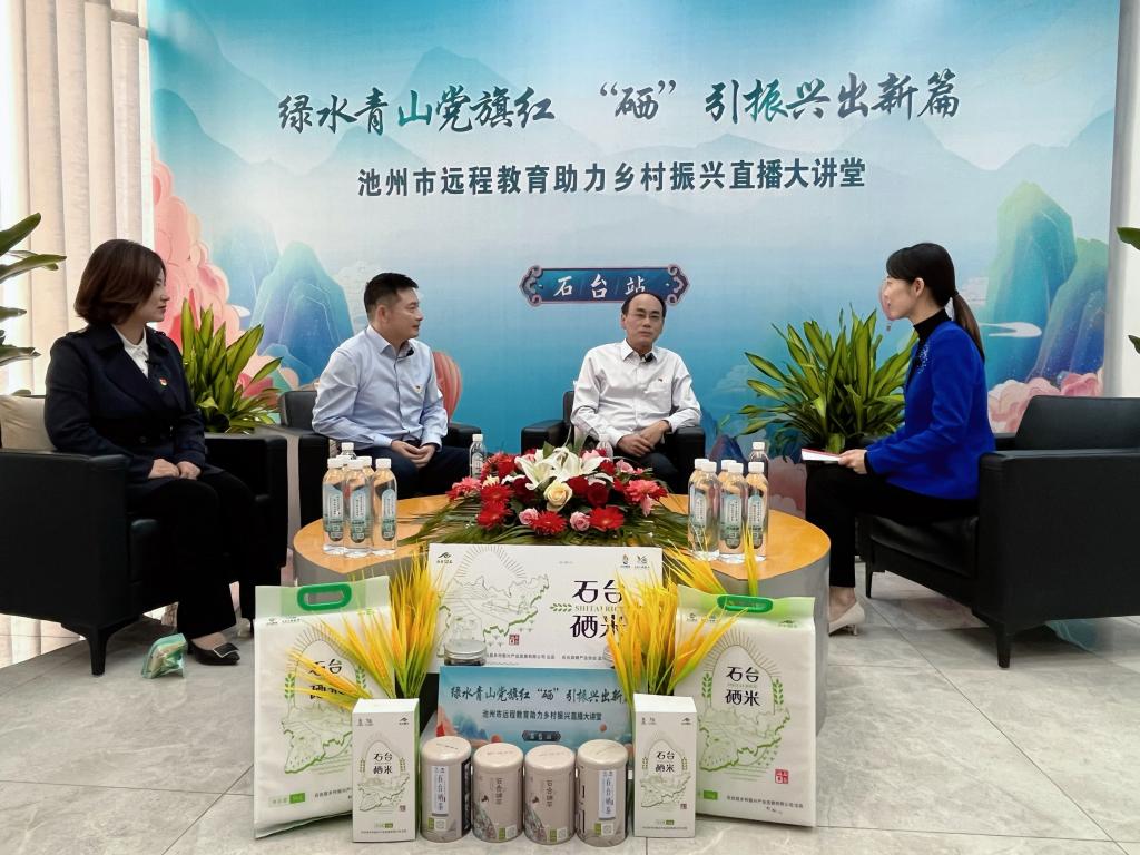 2022年10月18日上午,池州市远程教育助力乡村振兴直播大讲堂(石台站)活动在石台县融媒体中心演播大厅举办。本次活动由中共池州市委组织部主办,中共石台县委组织部承办,活动以“绿水青山党旗红,‘硒’引振兴出新篇”为主题,分“启动仪式”“直播大讲堂”两阶段展开,并通过省市先锋系列平台向全省进行现场直播。池州市委常委、组织部长廖强,石台县委书记靳武等领导出席本次活动,研究院院长谈家胜教授应邀出席并担任访谈嘉宾。